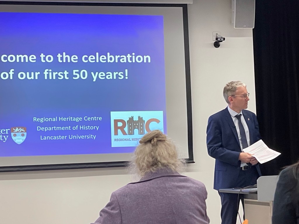 This year is the 50th birthday of Lancaster University’s Regional Heritage Centre, an organisation I’m proud to be involved with – I’ve mentored on their excellent FutureLearn MOOC, Lancaster Castle: the View from the Stronghold; I teach on their PGCert course; and of course I published John Balshaw through them a couple of years ago. Last Friday, the university celebrated the RHC at an event held in the university library.